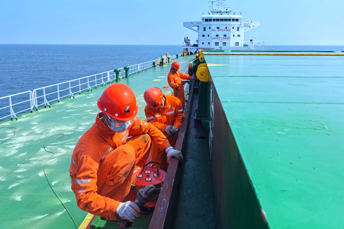 長袖長褲和大頭皮鞋的“反季”穿搭,一身汗水、滿臉灰塵,這是船員們的夏日寫真,橙、白、藍(lán)的堅守身影,在海上勾勒出一道靚麗的風(fēng)景線。