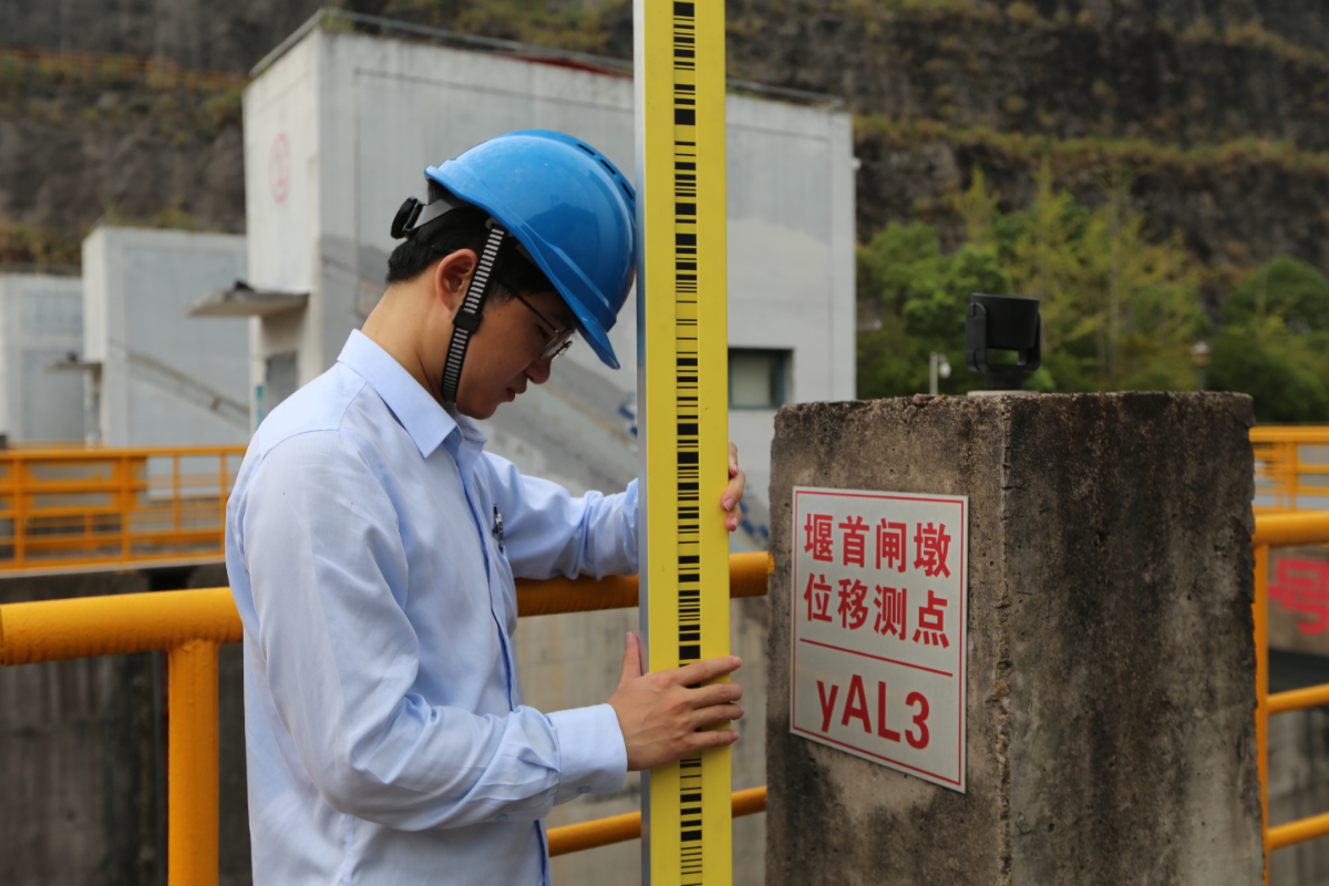 機(jī)組頂峰的響應(yīng)迅速、組織有序、運行平穩(wěn),背后是一群水電人的嚴(yán)陣以待。早上5點30分,水工觀測班職工王琪、蔡建林、孫紀(jì)輝、朱鴻杰等青工已到達(dá)大壩觀測點,開始測量水工建筑物的各項維度。“提早測量,不僅可以減少氣溫、折光對測量誤差的影響,還能避免高溫作業(yè)。”蔡建林介紹說。