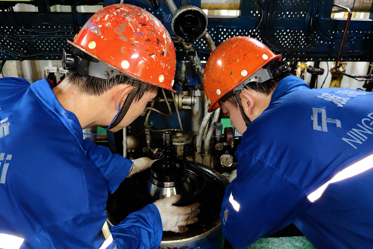 近200米長的巨輪,作業(yè)面積大,設(shè)施設(shè)備多。為保障電煤運輸和船舶安全,利用生產(chǎn)間隙及時做好各項維護(hù)保養(yǎng)工作成了寧波海運船員們的必修技能。高達(dá)60℃的滾燙船舶甲板上,船員們細(xì)致地進(jìn)行著除銹、打磨、清理基面、涂刷油漆等一道道工序,用雙手換來船容船貌的蛻變。超50℃、高達(dá)100分貝的船舶機(jī)艙間里,船員們對發(fā)電機(jī)、分油機(jī)等關(guān)鍵設(shè)備的零部件進(jìn)行拆卸、測量、保養(yǎng)、組裝,一絲不茍地做好維護(hù)保養(yǎng)和設(shè)備巡檢工作,讓每一臺設(shè)施設(shè)備隨時“在狀態(tài)”。