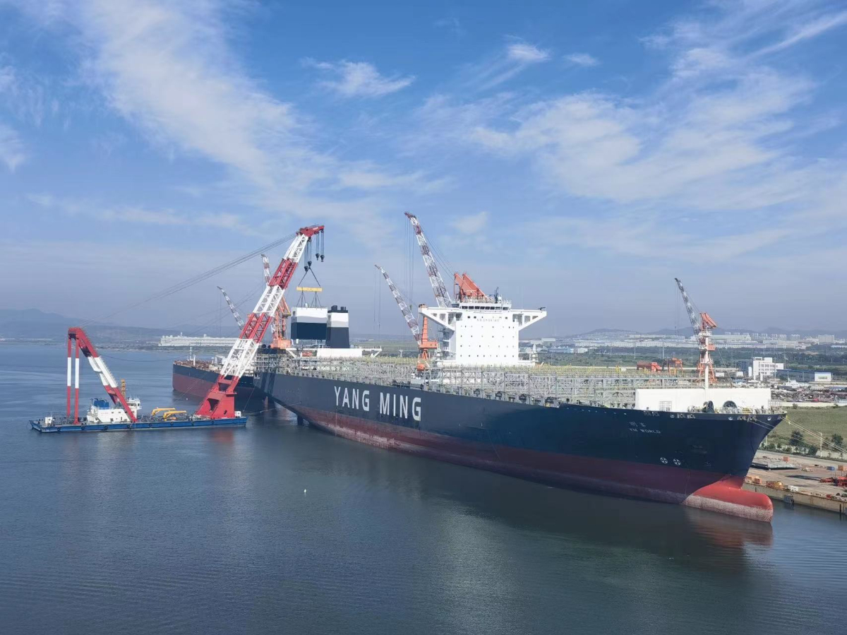 浙能邁領公司在船廠為船東吊裝脫硫塔裝置。 浙能邁領 提供