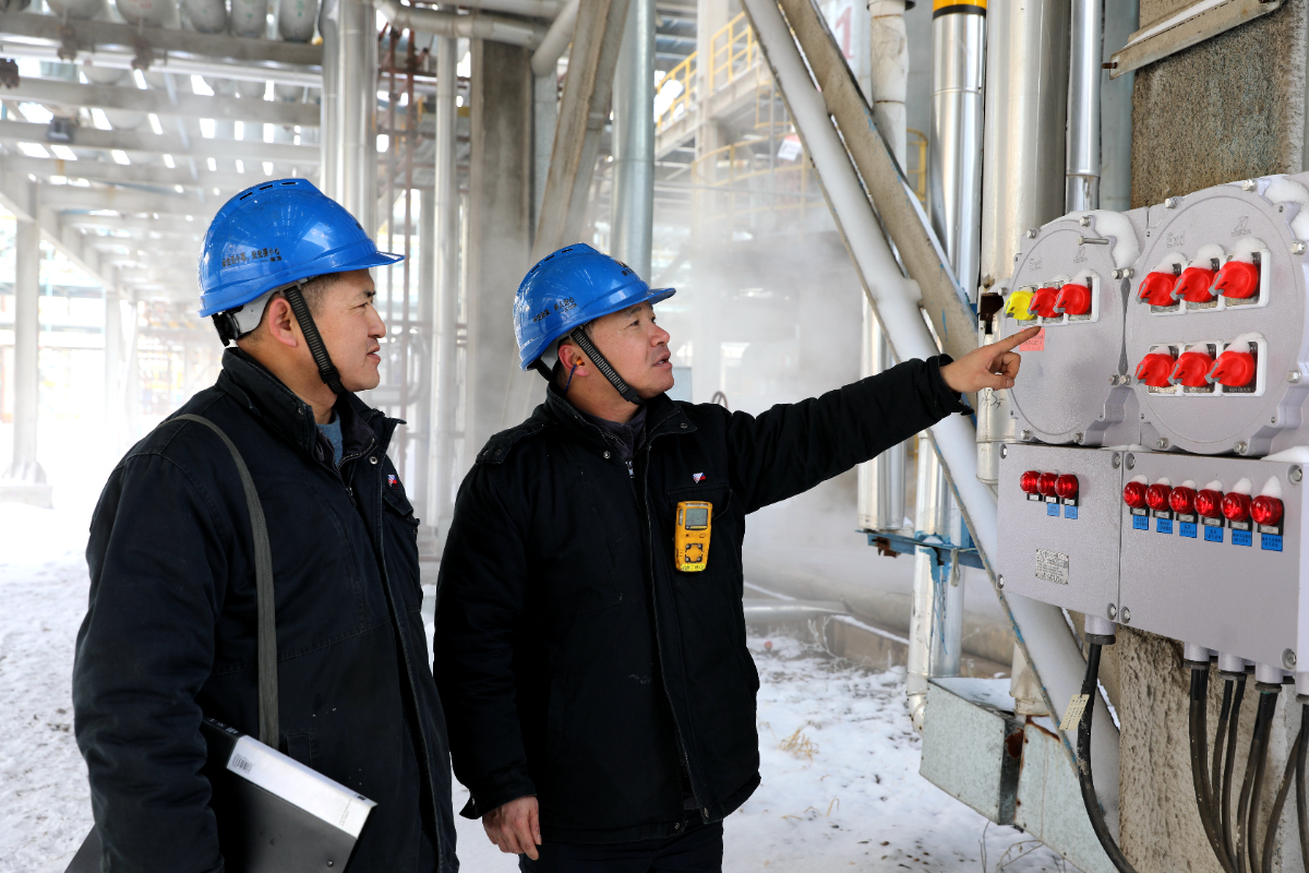 新天煤化工現場巡檢人員認真檢查、仔細記錄,確保冬季設備運行正常。 張建國 攝