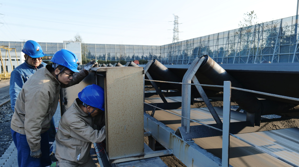 11月27日,浙能港口公司電儀班員工在煤炭堆場C6D皮帶處對拉繩開關進行檢查。 錢威 攝